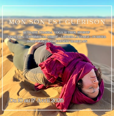 RETRAITE CHAKRA YOGA & TREK SPORTIF EN IMMERSION DANS LE DÉSERT ✨ 8 jours & 7 nuits ✨ du 10 au 17 Avril 2026💙 MON SON EST GUÉRISON 💙 VISHUDDA - ÉNERGIE DU CHAKRA DE LA GORGE